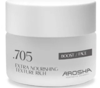 AROSHA .705 EXTRA NOURISHING CREAM TEXTURE RICH to intensywnie regenerujący krem o bogatej konsystencji, stworzony z myślą o skórze suchej, bardzo suchej i osłabionej. Jego zaawansowana formuła opiera się na połączeniu składników silnie odżywczych i odbudowujących, które przywracają skórze komfort, elastyczność i zdrowy wygląd. Krem wspiera procesy naprawcze, wzmacnia barierę hydrolipidową oraz chroni przed utratą wilgoci i czynnikami zewnętrznymi.