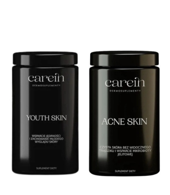 CAREIN Acne Skin + Youth Skin ZESTAW 90 DNI Na trądzik i zmarszczki 3 x 120 kaps. + 3 x 240 g
