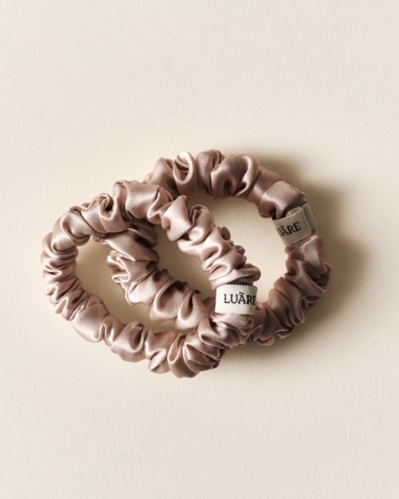 LUARE The Mini Scrunchie Zestaw 2 jedwabnych gumek do włosów kolor ZGASZONY RÓŻ
